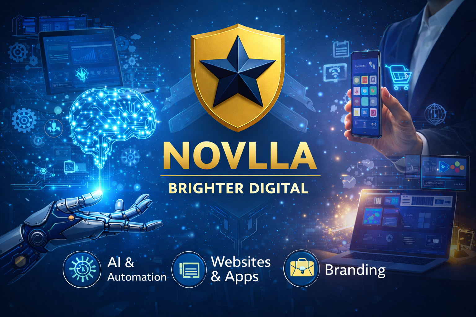 في نوفلا للحلول الرقمية، نحول استراتيجيتك إلى نظام يعمل لصالحك على مدار الساعة. سواء كنت تطلق مشروعًا ناشئًا أو تطور مؤسسة قائمة، نحن مستعدون للتنفيذ بكفاءة عالية.